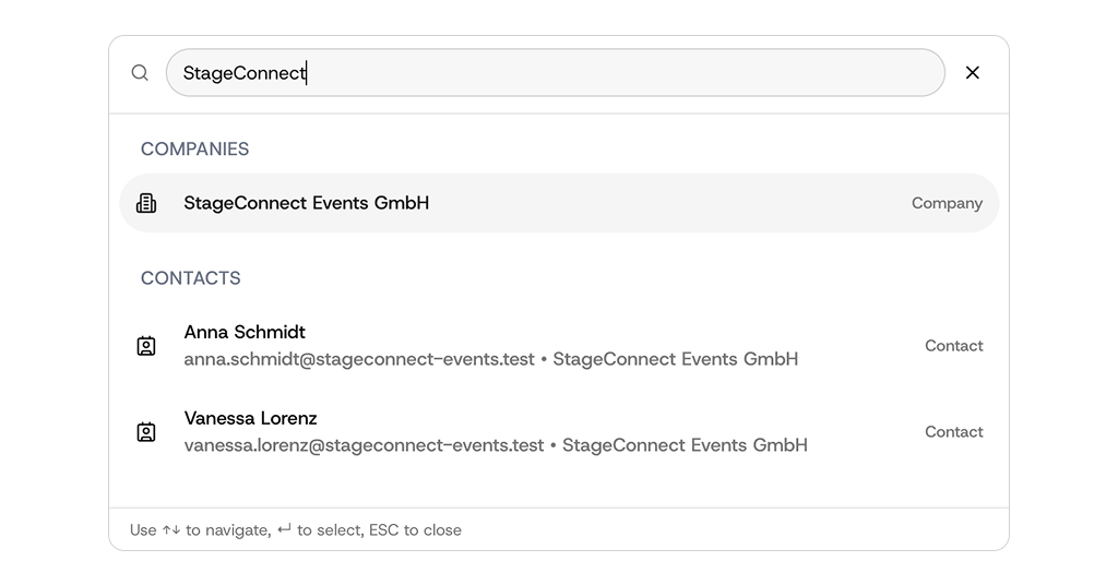 Wenn du dir nur einen einzigen Shortcut merkst, dann diesen. Egal wo du gerade bist: obim Dashboard, in einer Rechnung oder tief in den Einstellungen, drücke Cmd + K (oder Strg + K auf Windows).