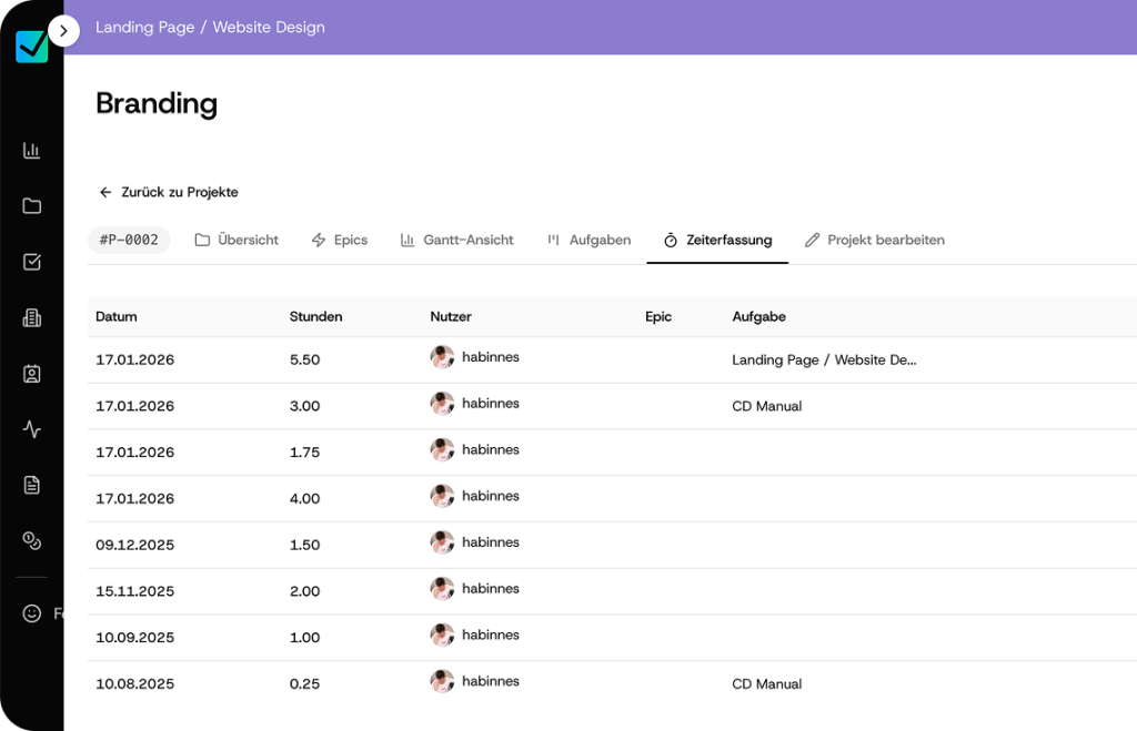 - Direktbuchung auf Aufgaben oder Projekte